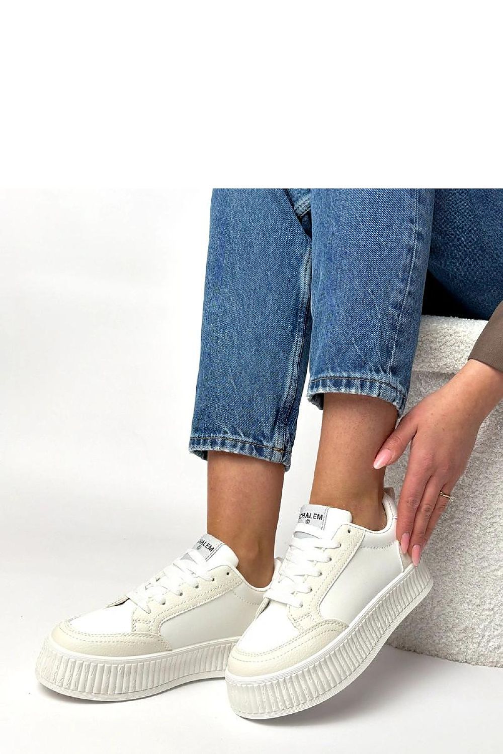 Sports shoes are practical and fashionable footwear perfect for everyday wear. Made from durable synthetic leather, they combine an aesthetic appearance with easy maintenance. The round toe provides comfort and freedom of movement for the toes. The low, lace-up model allows for a good fit to the foot and stability while walking. The fabric insole enhances comfort even after many hours of use. The 3.5 cm platform gently lifts the silhouette, without sacrificing comfort.