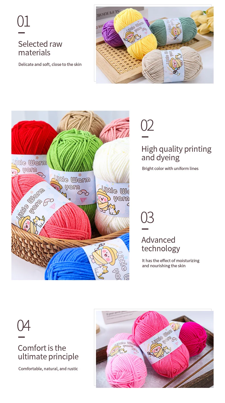 Bring your DIY projects to life with this soft medium-thick yarn, designed for both beginners and experienced crafters. Its soft texture ensures comfortable wear for handmade sweaters, hats, and scarves, while its medium thickness allows for quick and easy knitting or crochet.