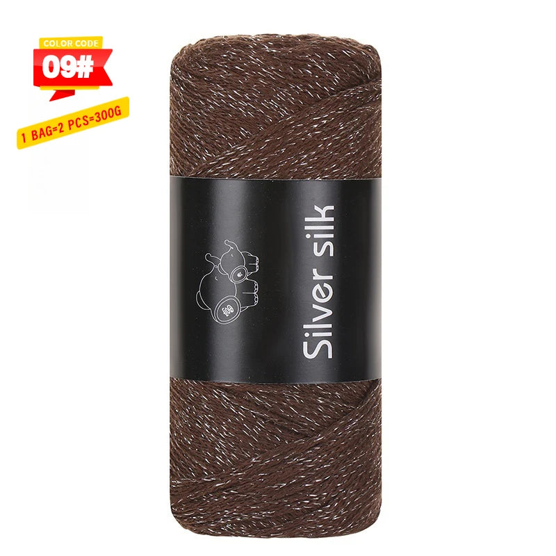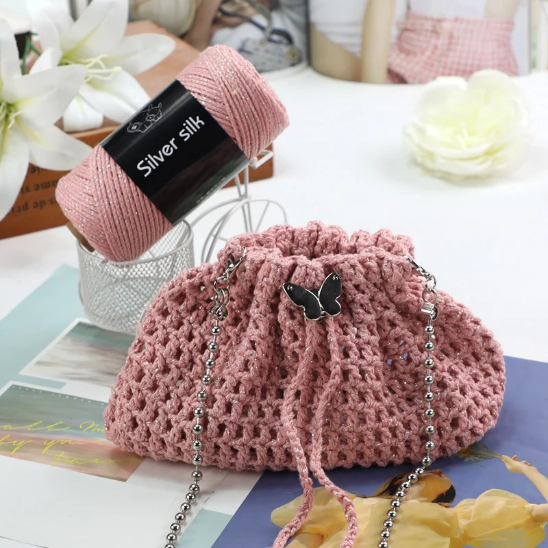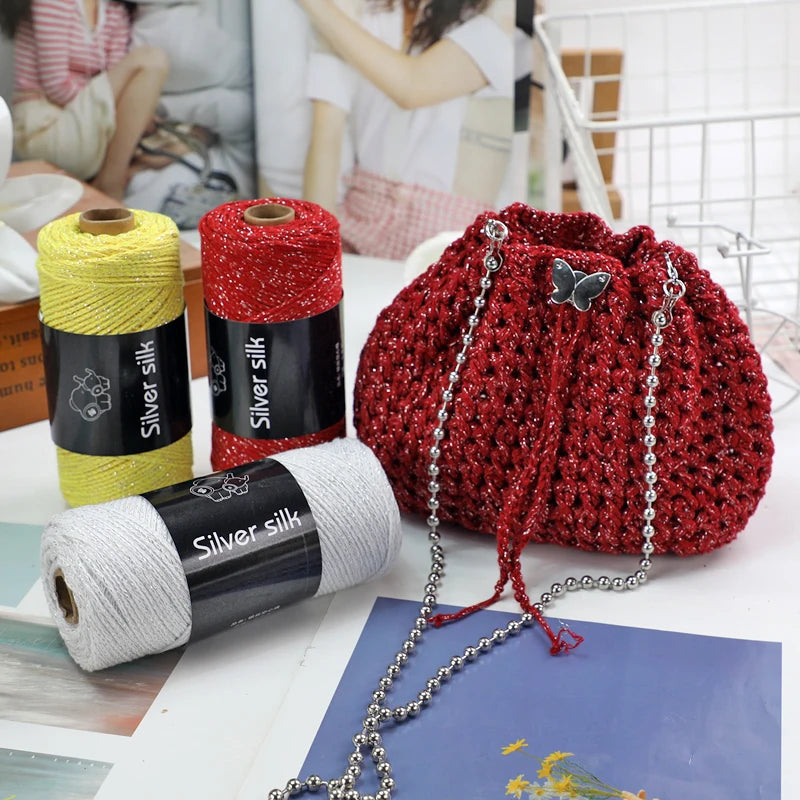 300g Shiny Silver Silk Hollow Yarn – Crochet Yarn for Bags & DIY Accessories