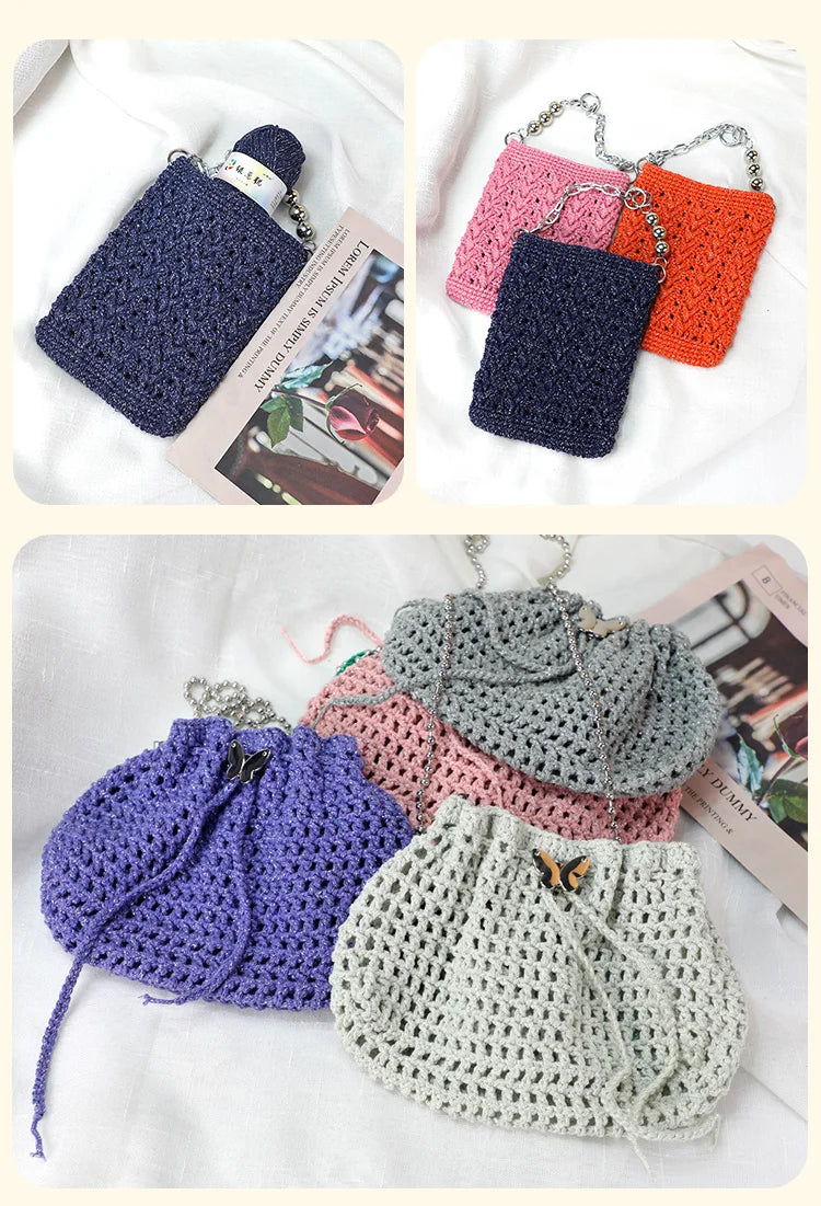Create trendy handmade bags and accessories with this sparkling hollow crochet yarn, perfect for unique