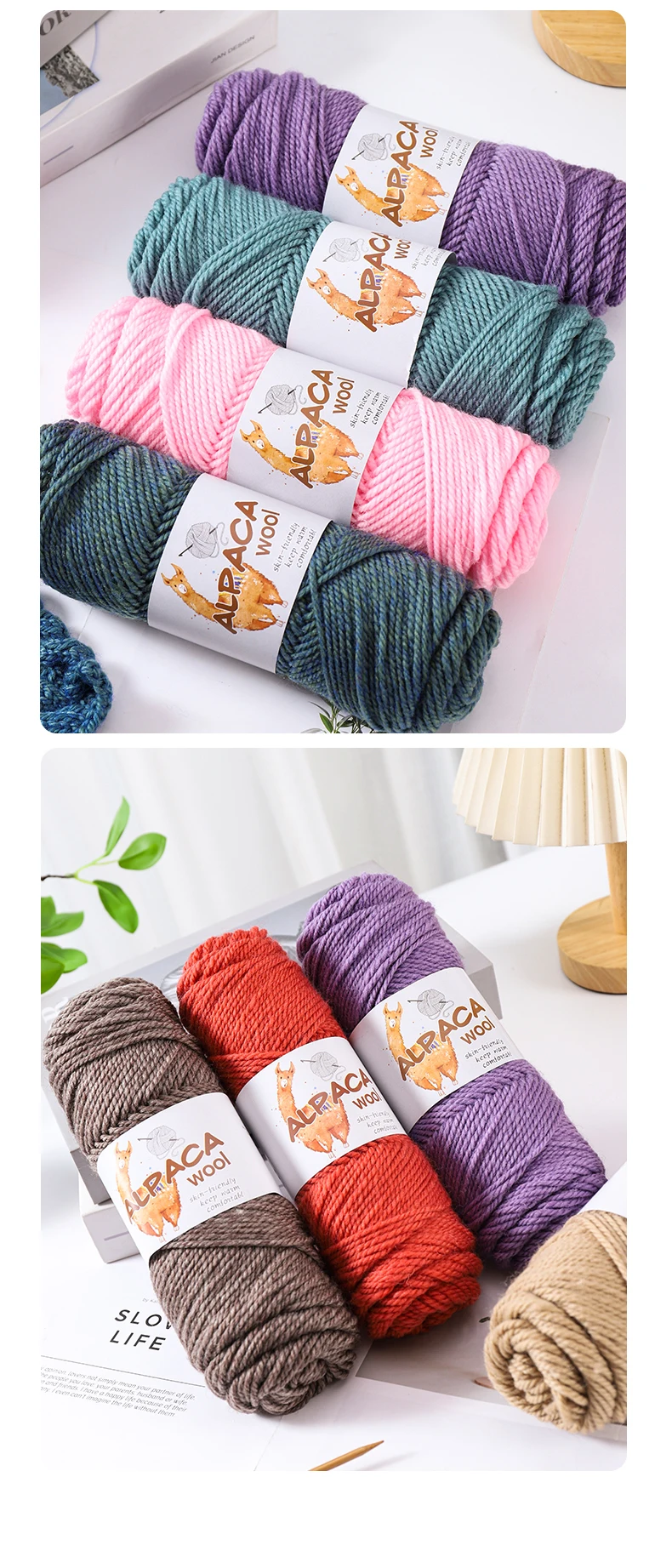 500g Thick Alpaca Wool Yarn Set (5 Skeins) – Soft Warm Knitting Yarn for Sweaters, Scarves, Hats & Winter Crafts