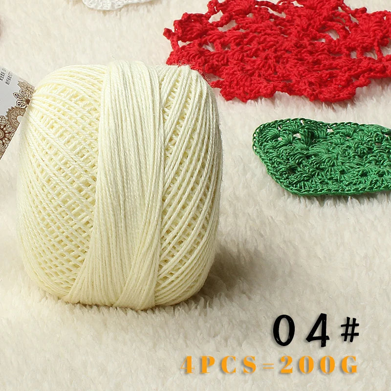 Create lightweight and elegant handmade summer garments with this Pearl Lace Cotton Thread. Each pack contains 4 pieces (200g total) of fine, soft, and breathable yarn, perfect for crafting shawls, summer outwear, half-sleeved tops, hats, and other delicate crochet or knitting projects.