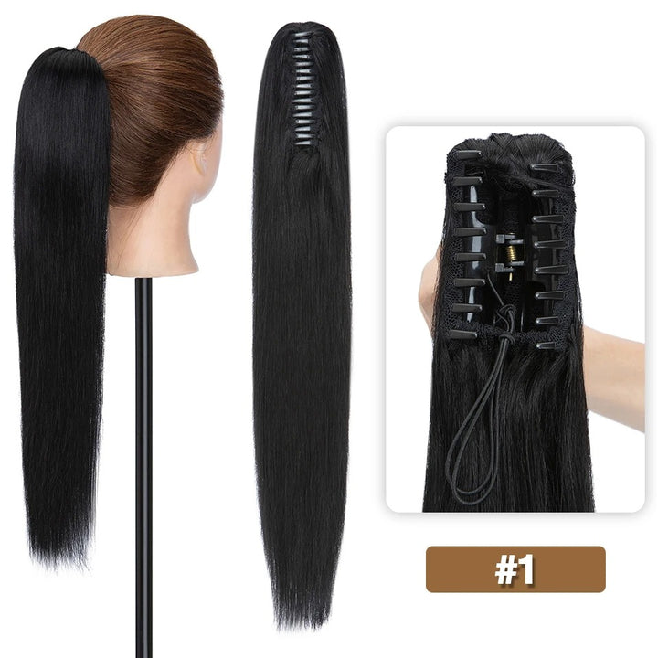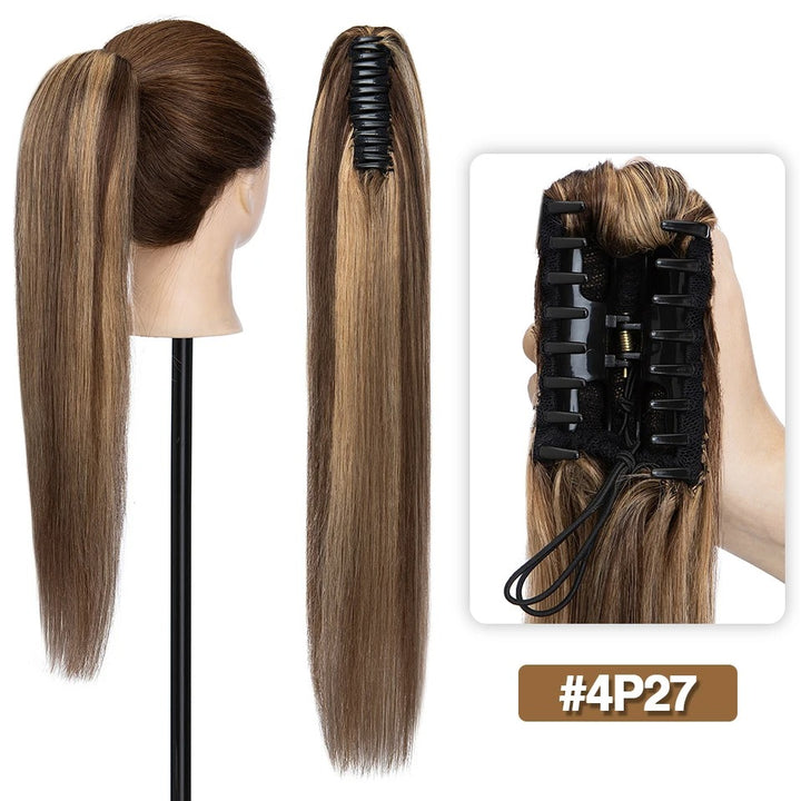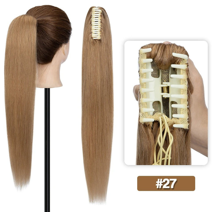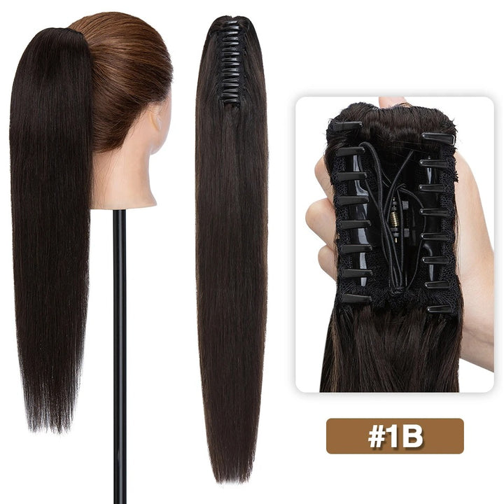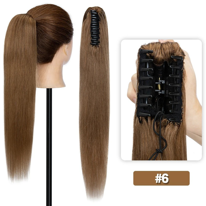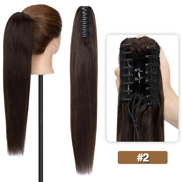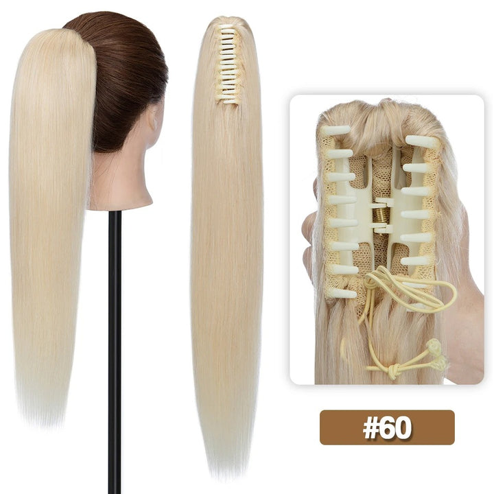 Transform your hairstyle instantly with this Thick Human Hair Ponytail Extension, designed with a secure claw clamp attachment for quick and effortless styling. Made from 100% real human hair, this clip-in ponytail offers a natural look, soft texture, and salon-quality finish—perfect for women seeking extra volume and length in minutes.