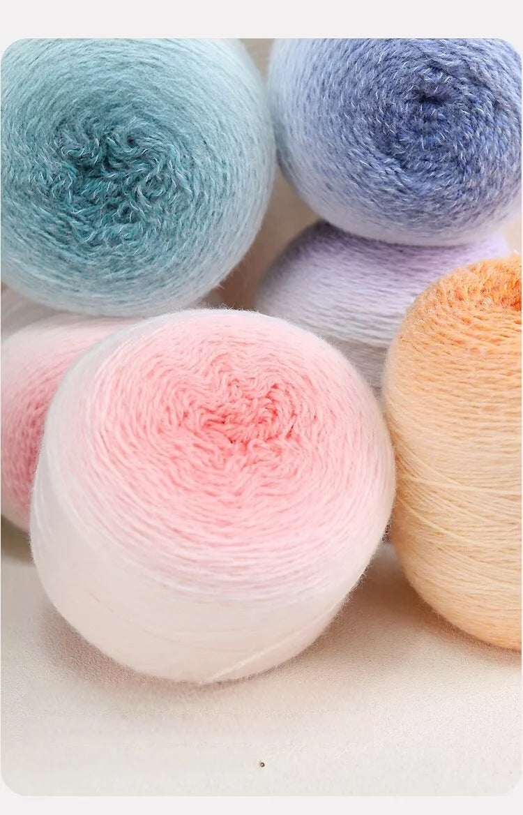This Super Large Gradient Long-Haired Yarn is designed for knitters and crocheters who want to create eye-catching, luxurious projects. The medium-thick, long-haired texture provides warmth and softness, while the smooth gradient transitions add a professional, polished look to every piece.