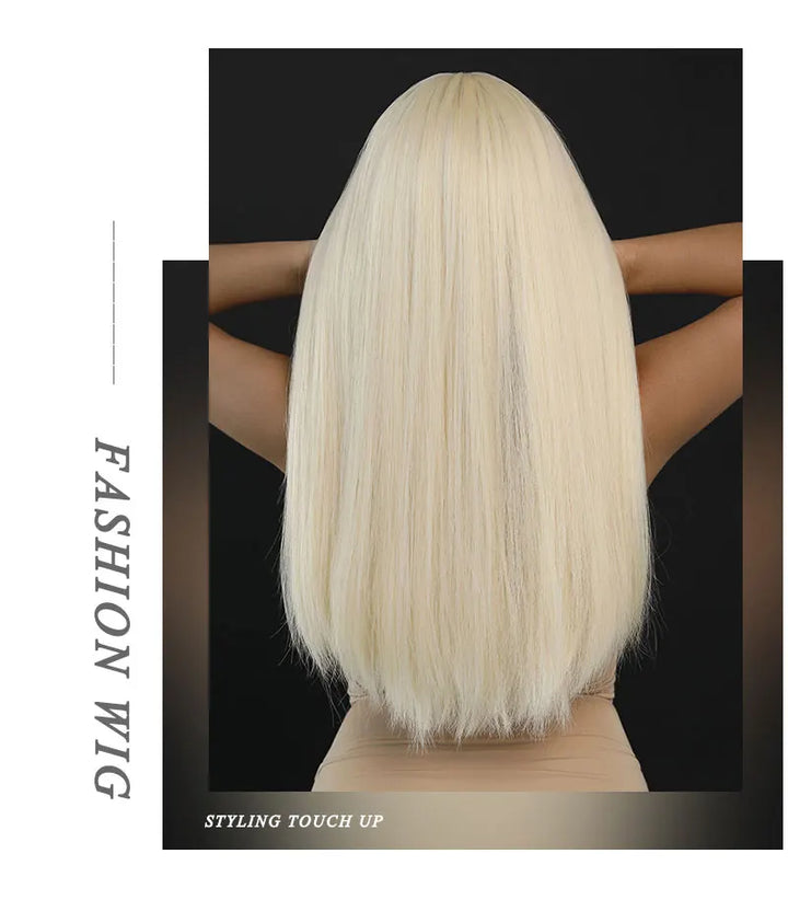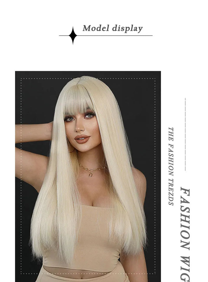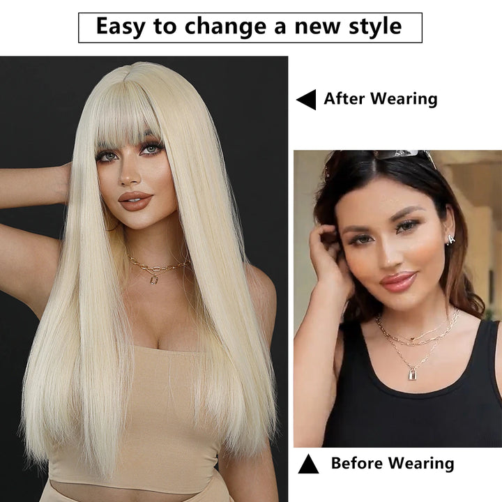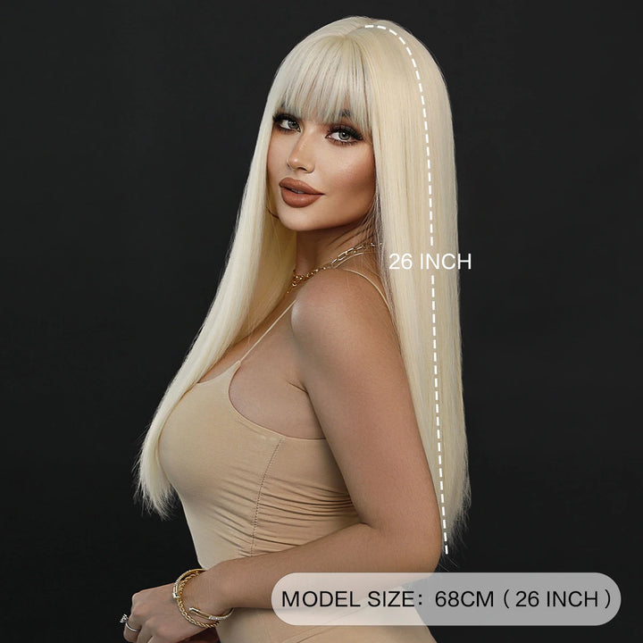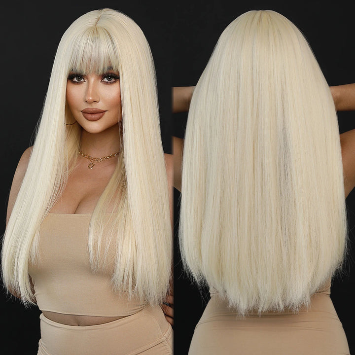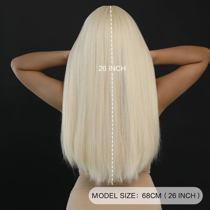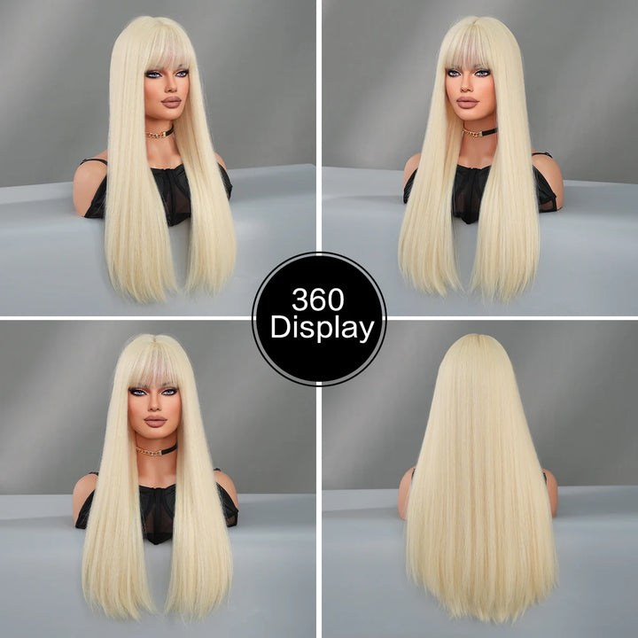 Premium 613 Blonde Wig Long Straight Hair With Bangs Heat Resistant Synthetic Natural Looking Wigs for Women Party Cosplay 26"