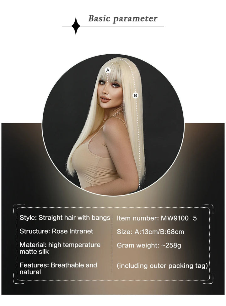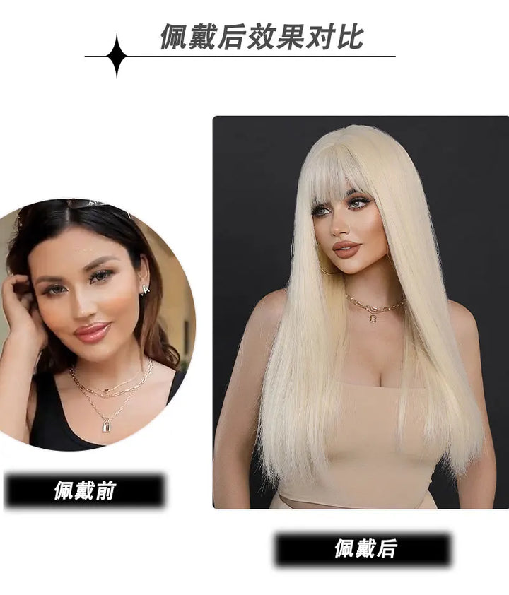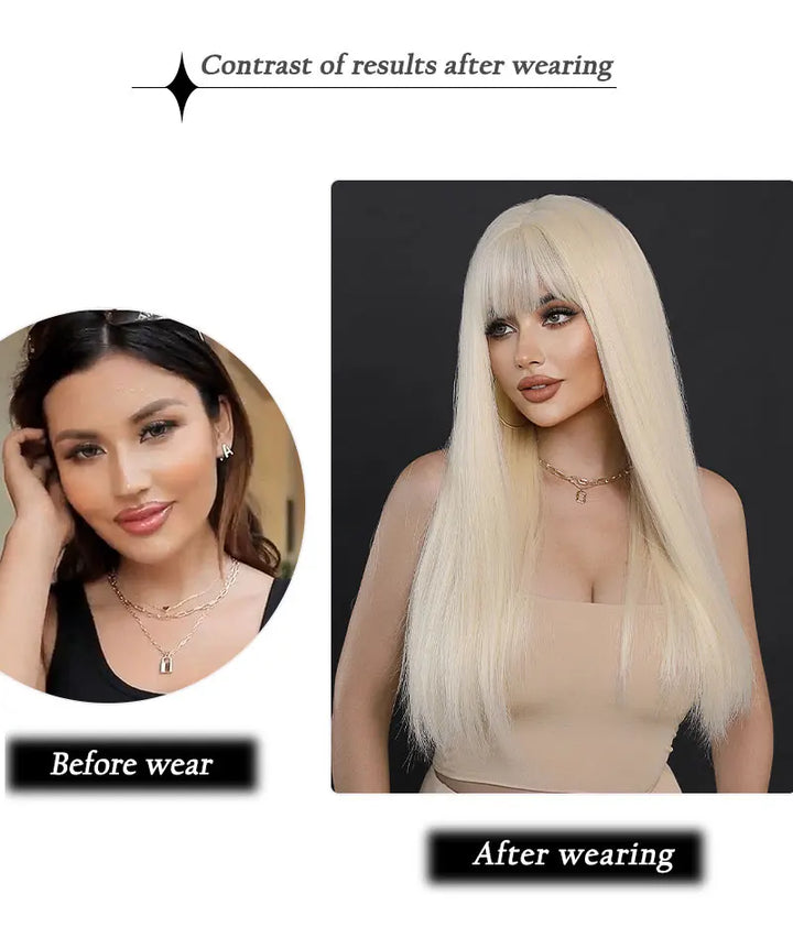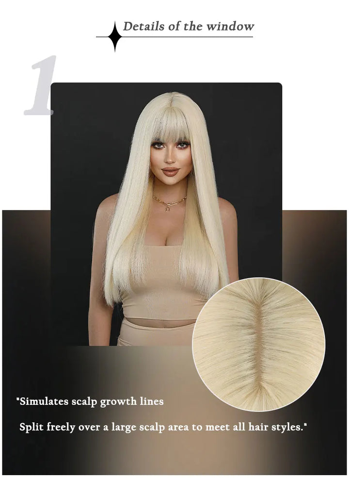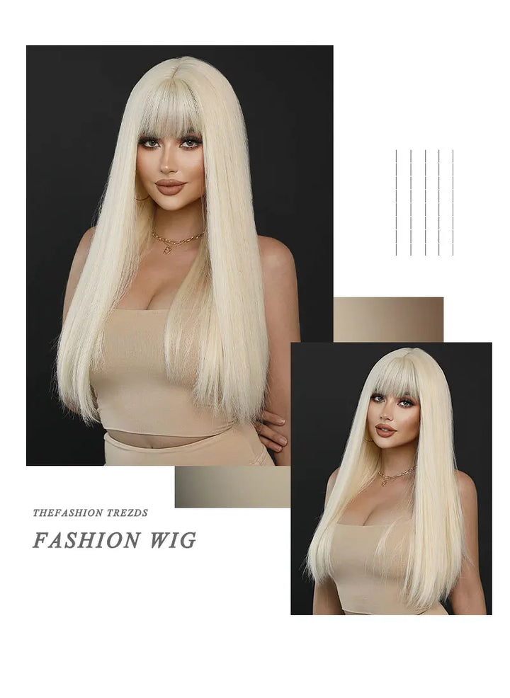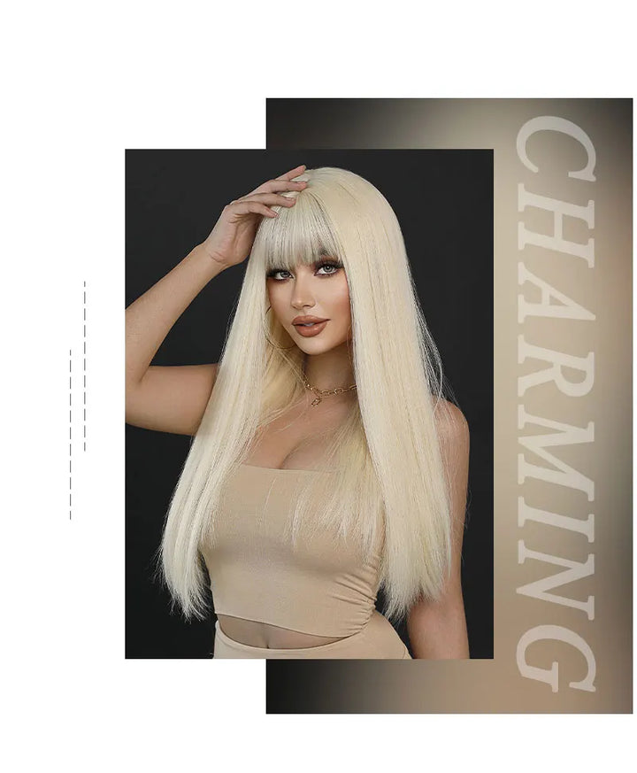 Premium 613 Blonde Wig Long Straight Hair With Bangs Heat Resistant Synthetic Natural Looking Wigs for Women Party Cosplay 26"