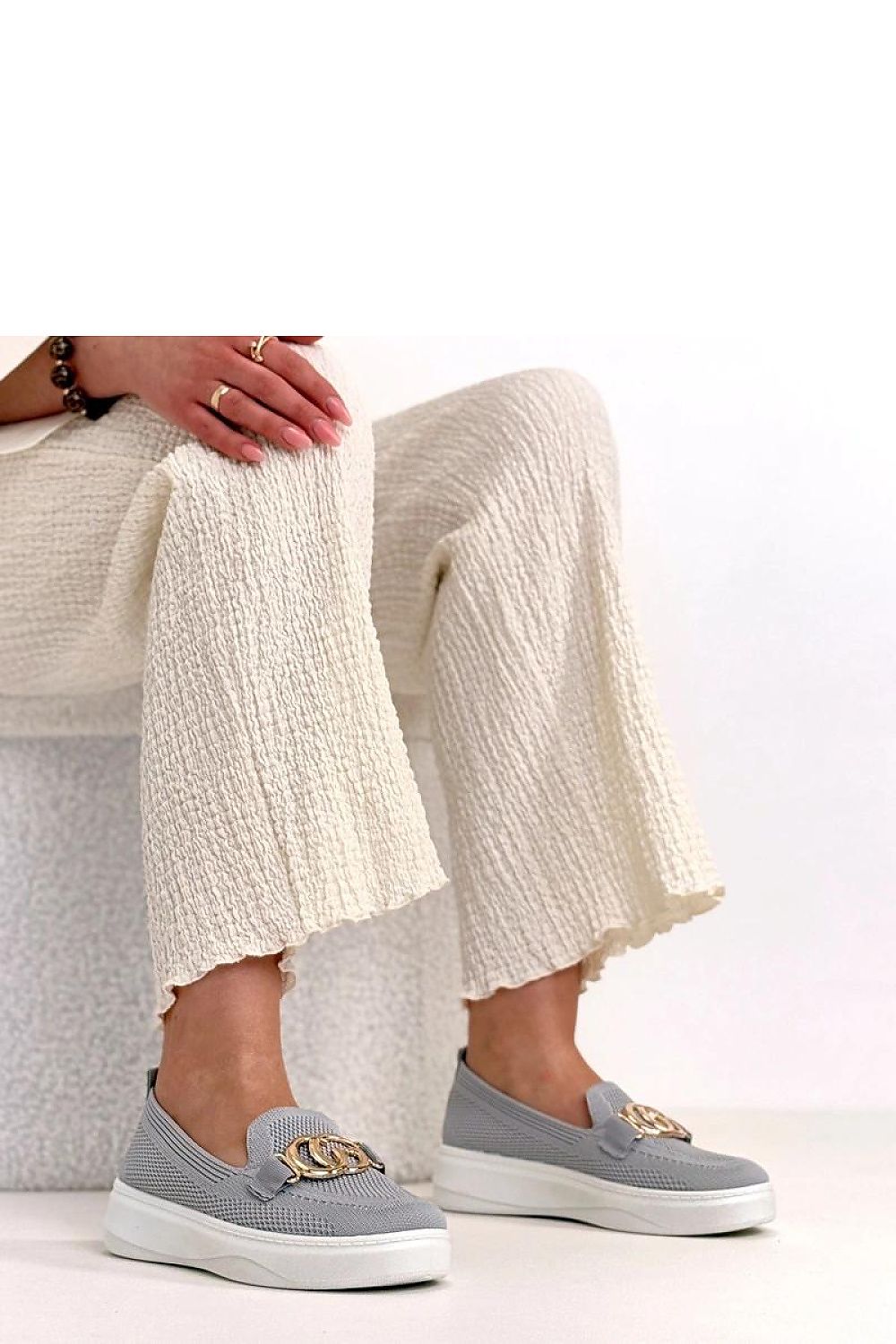 Modern sneakers with an eye-catching decorative buckle on the front are a stylish proposition for people who appreciate comfort and original details. Made of high-quality fabric, they are lightweight, breathable, and perfect for everyday use. The model has a round toe that provides comfort and freedom for the toes. The low upper gives the shoes a universal character, making them perfect for pairing with jeans, as well as sporty or casual outfits. The 4 cm platform subtly elevates the silhouette, adding a few centimeters of height while guaranteeing stability. The slip-on construction makes it easy to quickly put on and take off the shoes. The fabric insole increases comfort and supports proper air circulation. These are the perfect sneakers for people who want to combine a sporty look with a fashionable, attention-grabbing accent.