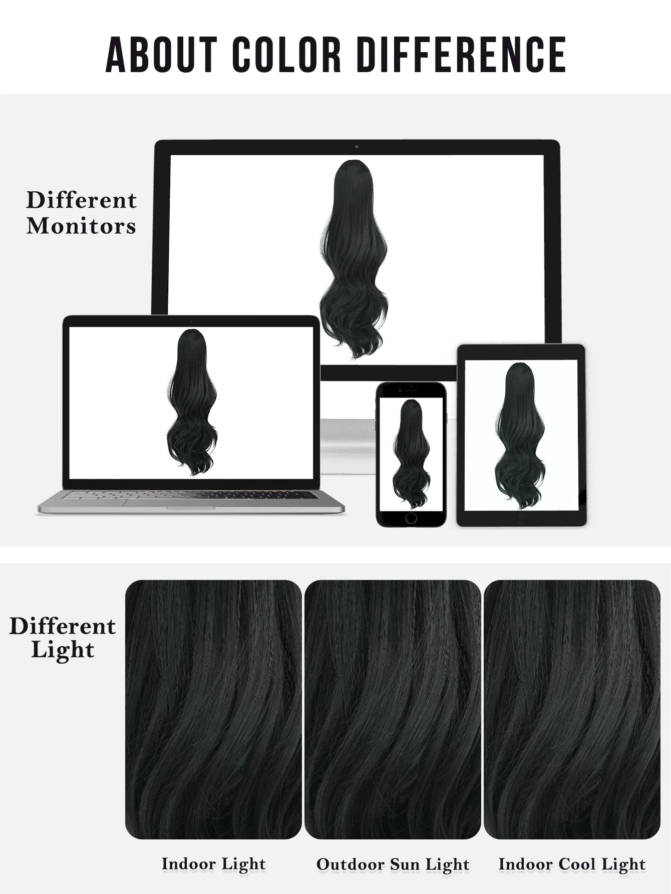 Black Hair Extensions 28 Inch Clip in Wig Adjustable Size Curly Ponytail Synthetic Hair Extension Set Black with Steel Prongs