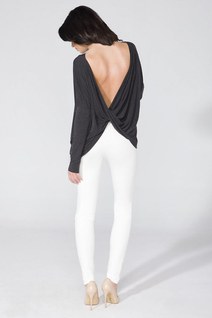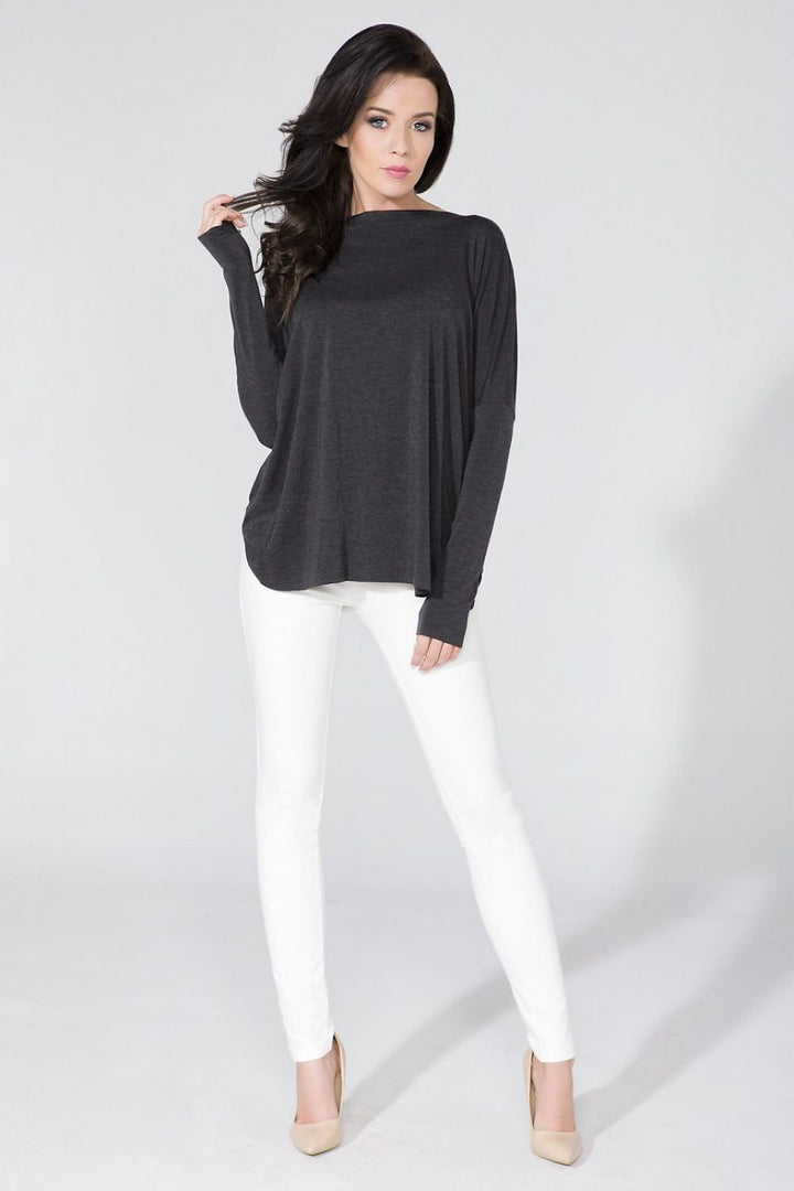 Original blouse made of delicate knitwear with a wide cut. The edges are finished raw. It is possible to exchange the front with the back.