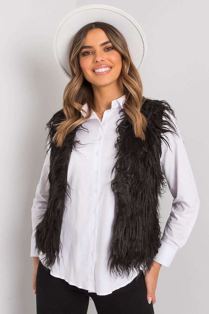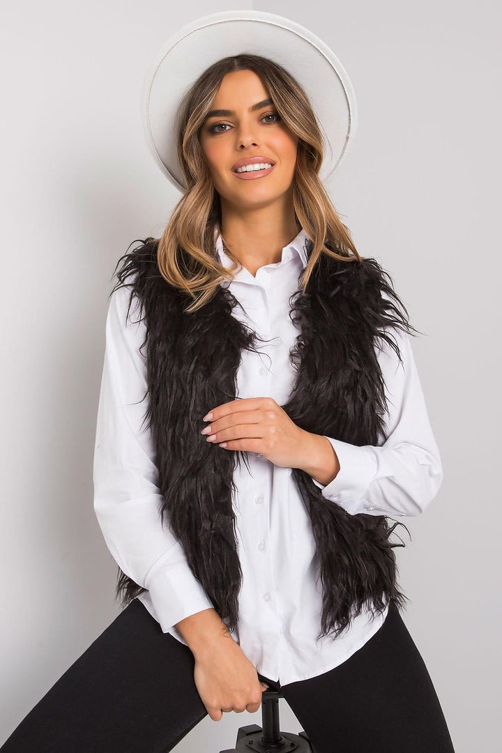 Gilet en fourrure beige à fermeture par agrafes, entièrement doublé.