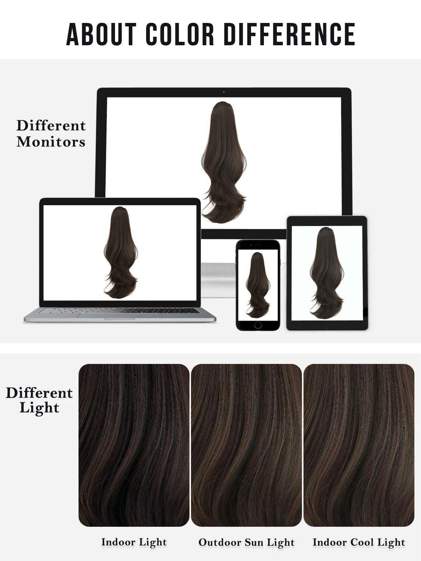 Van Dyke Brown Hair Extensions 28 Inch Clip-In Wig Adjustable Size Curly Ponytail Synthetic Hair Pack Black with Steel Prongs