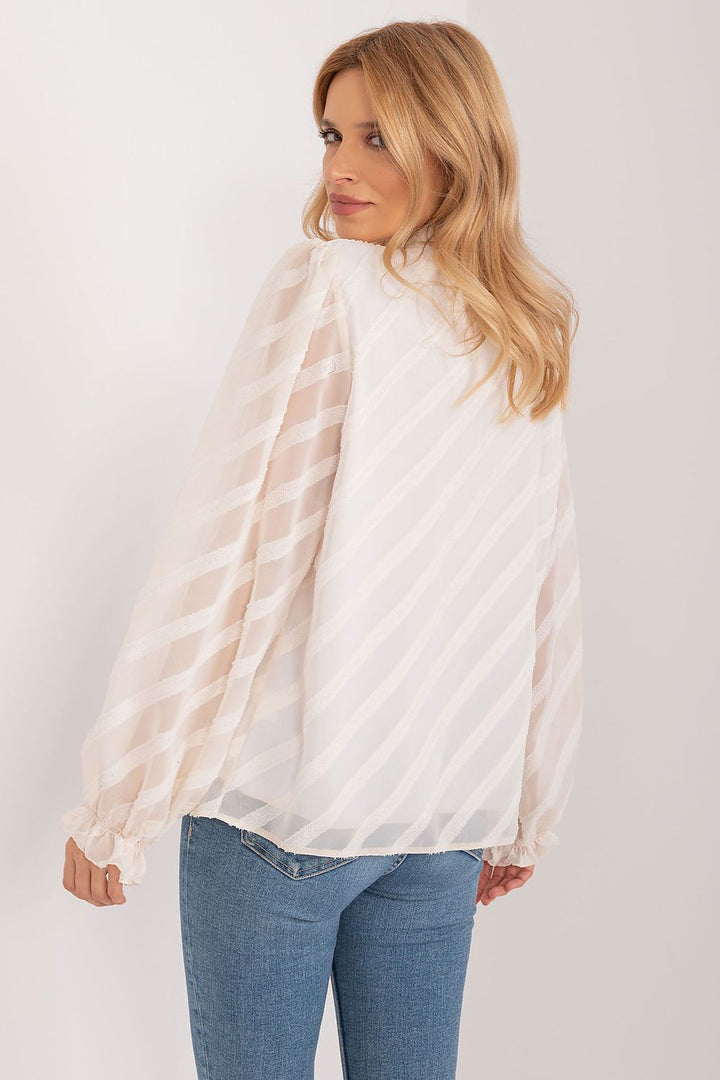 This classic women's button-down shirt is the quintessence of elegance and style, ideal for a variety of occasions, especially for work and business meetings. Its variegated fabric texture adds to its unique character, attracting attention and emphasizing the personality of the woman wearing it. This shirt has a standard length, which guarantees comfort and the right proportion for wearing both over pants and with a skirt. The long sleeve made of transparent material adds subtlety and delicacy, while emphasizing the elegance of the whole. The stand-up collar gives the shirt a sophisticated touch, while adding confidence to the wearer. In addition, the presence of a lining makes this shirt wear extremely pleasant and comfortable, providing a feeling of luxury and comfort throughout the day. With its timeless design and high quality workmanship, this women's shirt is not only a closet staple, but also an expression of confidence and elegance for any woman who wears it.