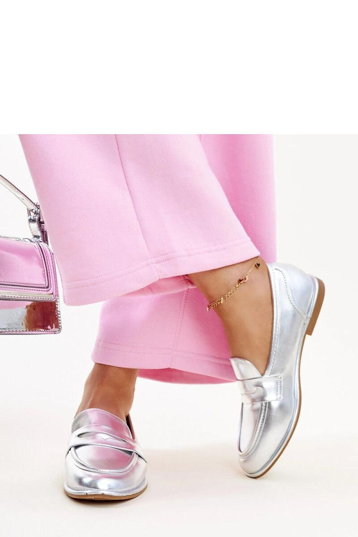 Silver classic moccasins Nasia are an essential element in every wardrobe! Their modern design with an almond toe not only looks elegant, but is also extremely comfortable. Made of high-quality rubber, they are lightweight and easy to put on, making them perfect for everyday wear. Additionally, the metallic shade adds a bit of shine to them, complementing any outfit perfectly.